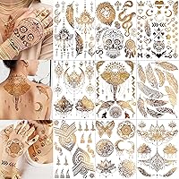 Konsait 12 Blatter Metallic Temporare Tattoos 150 Flash Tattoos Schwarz Silber Goldene Tattoos Temporare Tatowierung Aufkleber Wasserfest Klebetattoos Erwachsene Festival Tattoos Frauen Madchen Amazon De Kosmetik